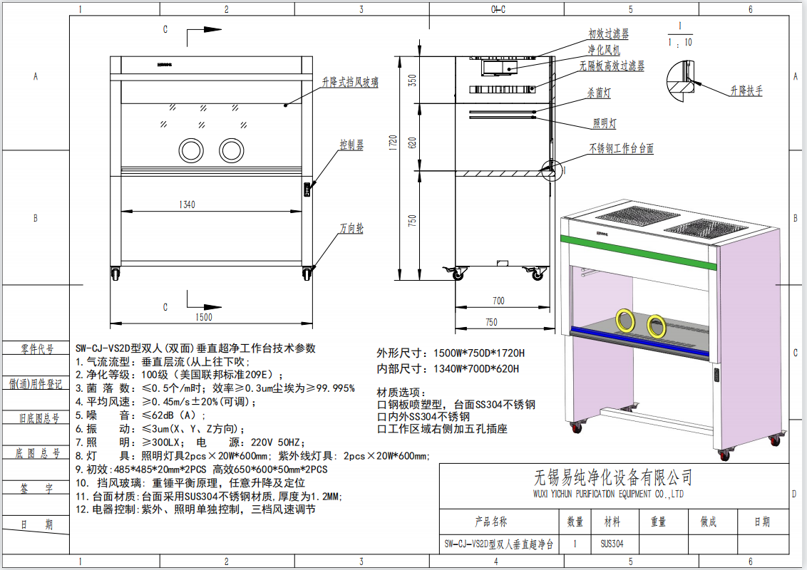 易純凈化無(wú)菌接種超凈工作臺(tái)技術(shù)參數(shù):